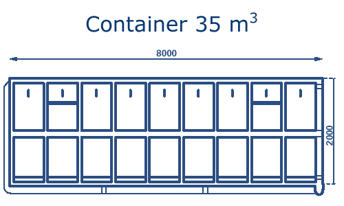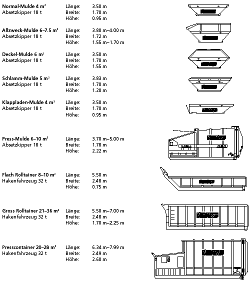 Anbei eine kleine Zusammenstellung von Mulden und Behältern mit den relevanten Größenangaben.